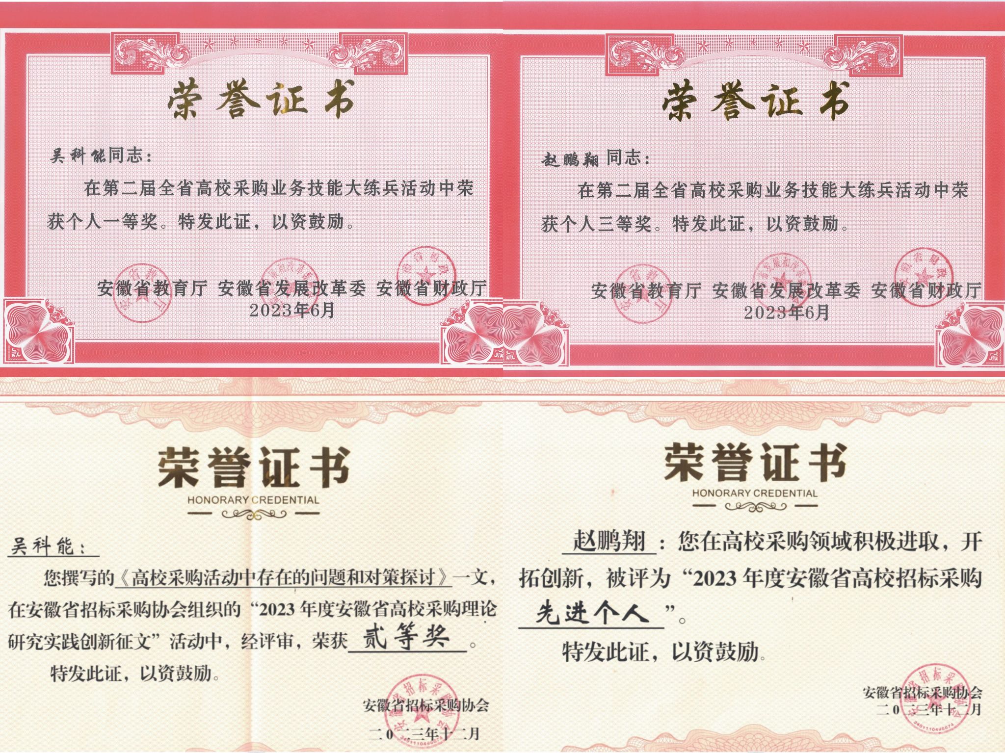 招标采购科自成立以来,一直秉承“出实招、办实事、求实效”的工作原则和“服务学校事业发展”的工作理念,为学校的教学、科研、民生提供了有力保障。一是执行与效益双提升。在采购执行过程中,严格按照制度要求,精心组织,规范操作,确保了各类采购项目的顺利实施。招标采购项目涵盖教学科研设备、办公家具、物业服务、工程建设等多个领域。通过科学合理的采购方式选择和严谨细致的采购文件编制,有效降低了采购成本,节约了大量资金。二是服务与廉政齐推进。始终将服务师生作为工作的出发点和落脚点,不断优化服务流程,提高服务质量。通过加强与各部门的沟通协调,提前介入采购项目,为项目单位提供政策咨询和业务指导,帮助他们做好采购前期准备工作。同时,始终将廉政建设贯穿于招标采购工作的全过程,建立健全廉政风险防控机制,加强对关键环节和重点岗位的监督管理,营造了风清气正的采购环境。三是队伍专业化建设见效。通过内部培训、业务交流等多种方式,不断提升工作人员的业务能力和综合素质。鼓励教职工积极参加行业竞赛和学术研究,在实践中锻炼和提升能力。十年来,资产管理处(招标办)表现卓越、成果亮眼,在四届全省高校采购业务技能大练兵中,学校集体荣誉不断,屡获一、二、三等奖及优秀组织奖。此外,采购案例获评省属高校优秀案例,单位多次获评“安徽省高校招标采购先进集体”,资产管理处人员多次获评“安徽省高校招标采购先进个人”,撰写论文在征文活动中斩获二等奖。